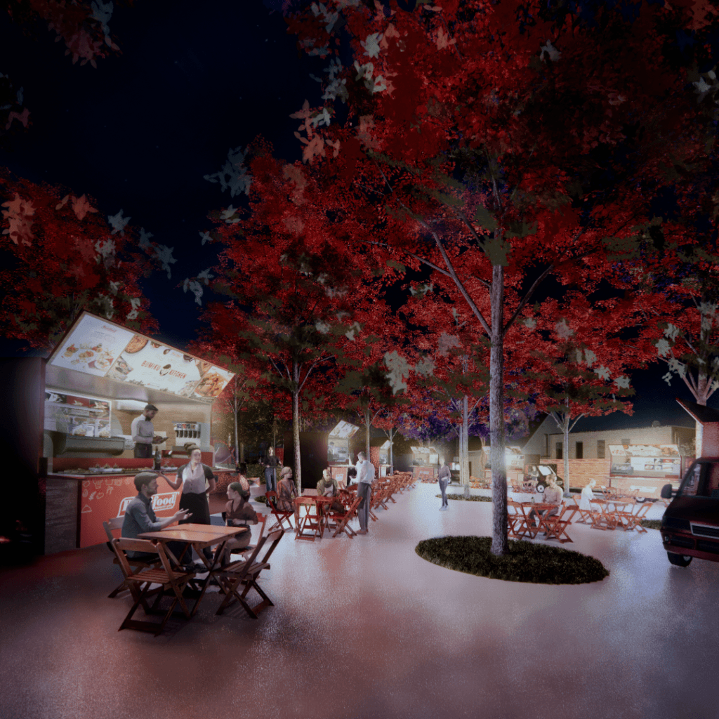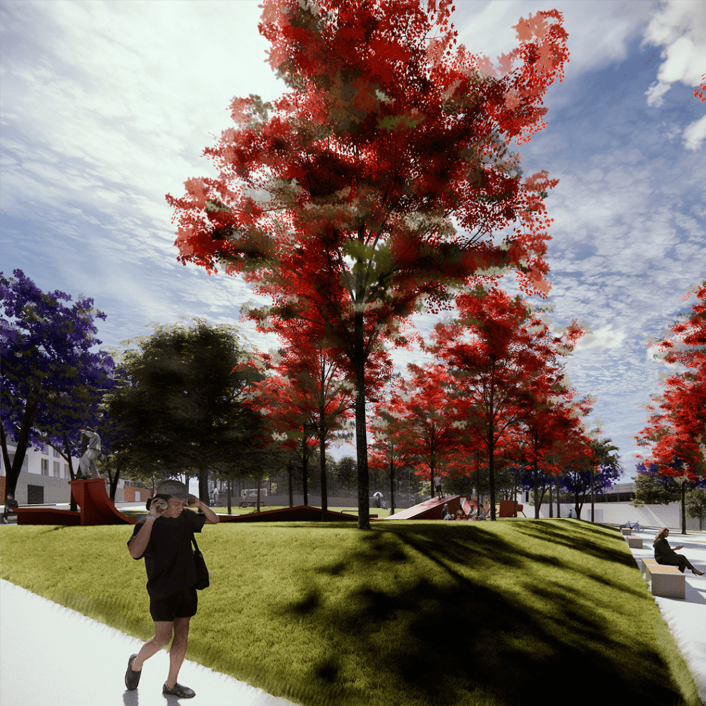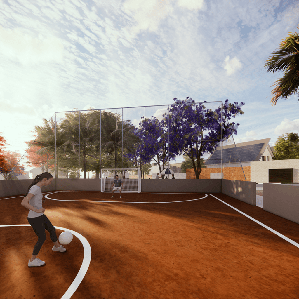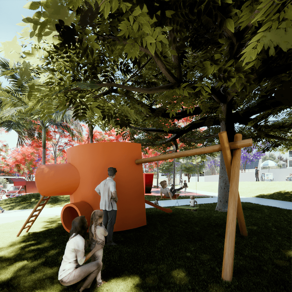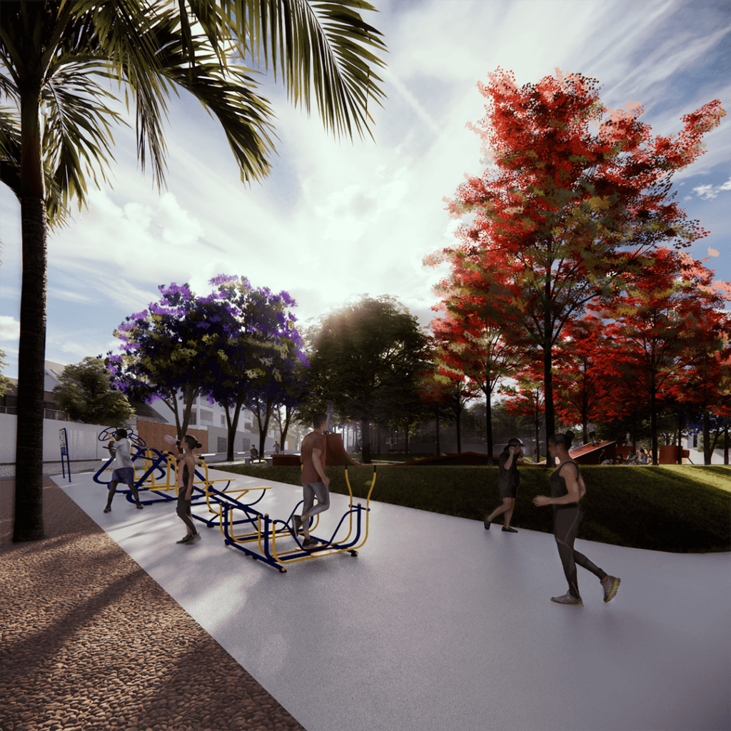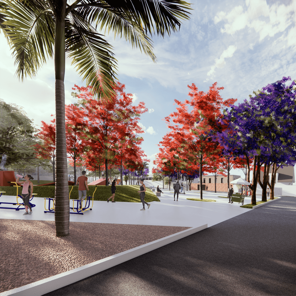 Praça das Árvores foi projetada para ser um ponto de encontro e lazer para os moradores de um novo loteamento em uma cidade de Goiás. Oferece diversas opções, como playground, quadra de futebol, academia ao ar livre e área para food trucks, com destaque para a pista de skate. A escolha da localização visou atender aos moradores e valorizar o bairro, priorizando a topografia natural e a incidência solar, além de vegetação que proporcione sombra.